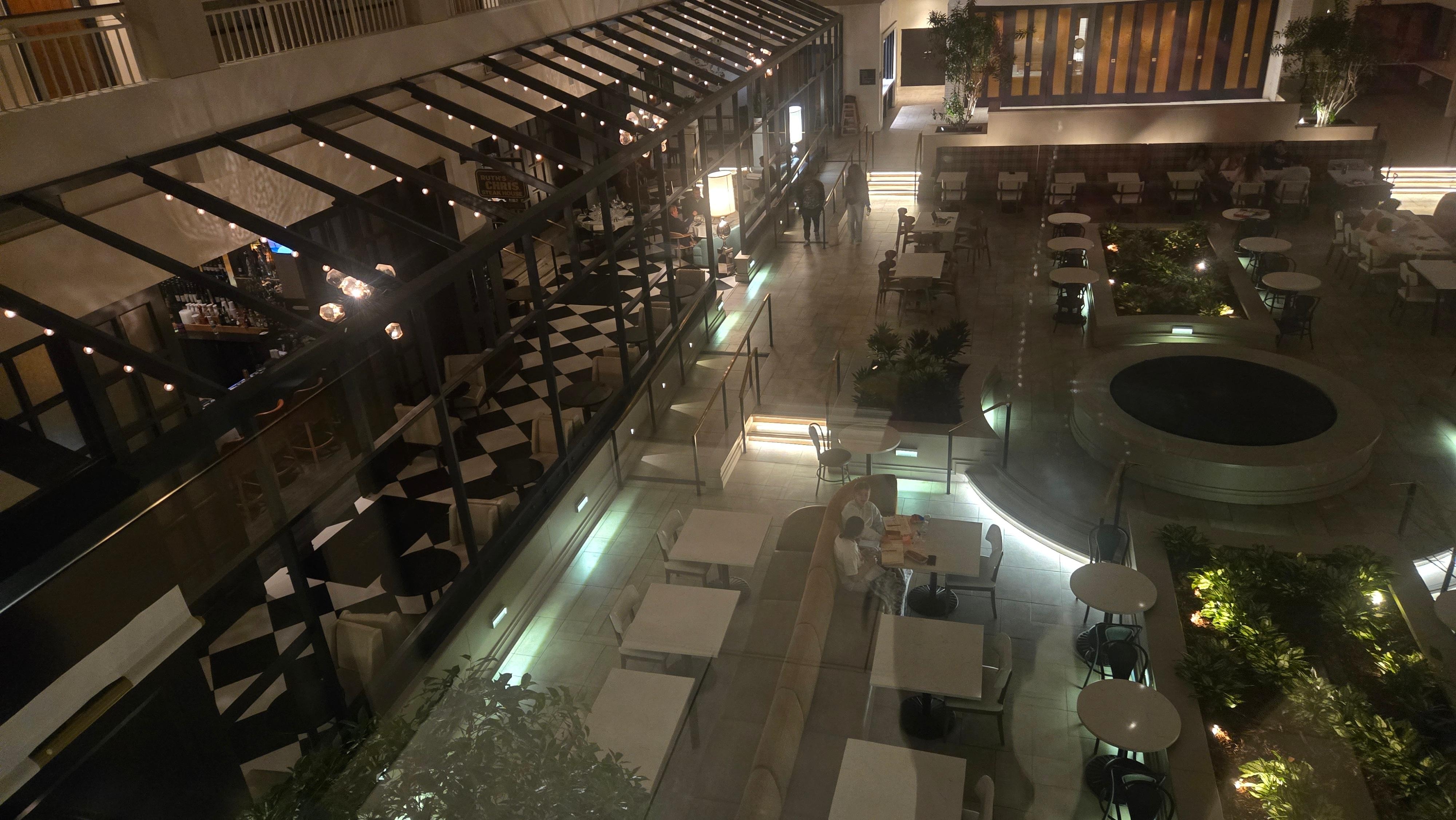 The lobby restroom had an overly pungent odor of urine. Our rooms were clean, the breakfast is free but advertised as made to order, only the omelets are made to order other wise it’s eggs, sausage, maybe bacon of some type, apples, bananas, oatmeal, and 2 types of cereal. They did have a station with a few bengals and bread slices to toast. Coffee and soda drinks with juice. You do get 2 free drinks at happy hour at the bar upstairs, it’s very limited but still a nice set up. We booked a 2 queen bed so that we would specifically have a bathtub because we have a daughter with special needs who doesn’t like a shower, and they overbooked so we got a king bed with a pull out bed and a shower. Ruth’s Kris was nice. But for some good Mexican go down to Rreal Taco! The pool was closed due to pollen??? The clear glass elevators were fun to my kids though! Overall it was an average stay! The good equaled out the bad!