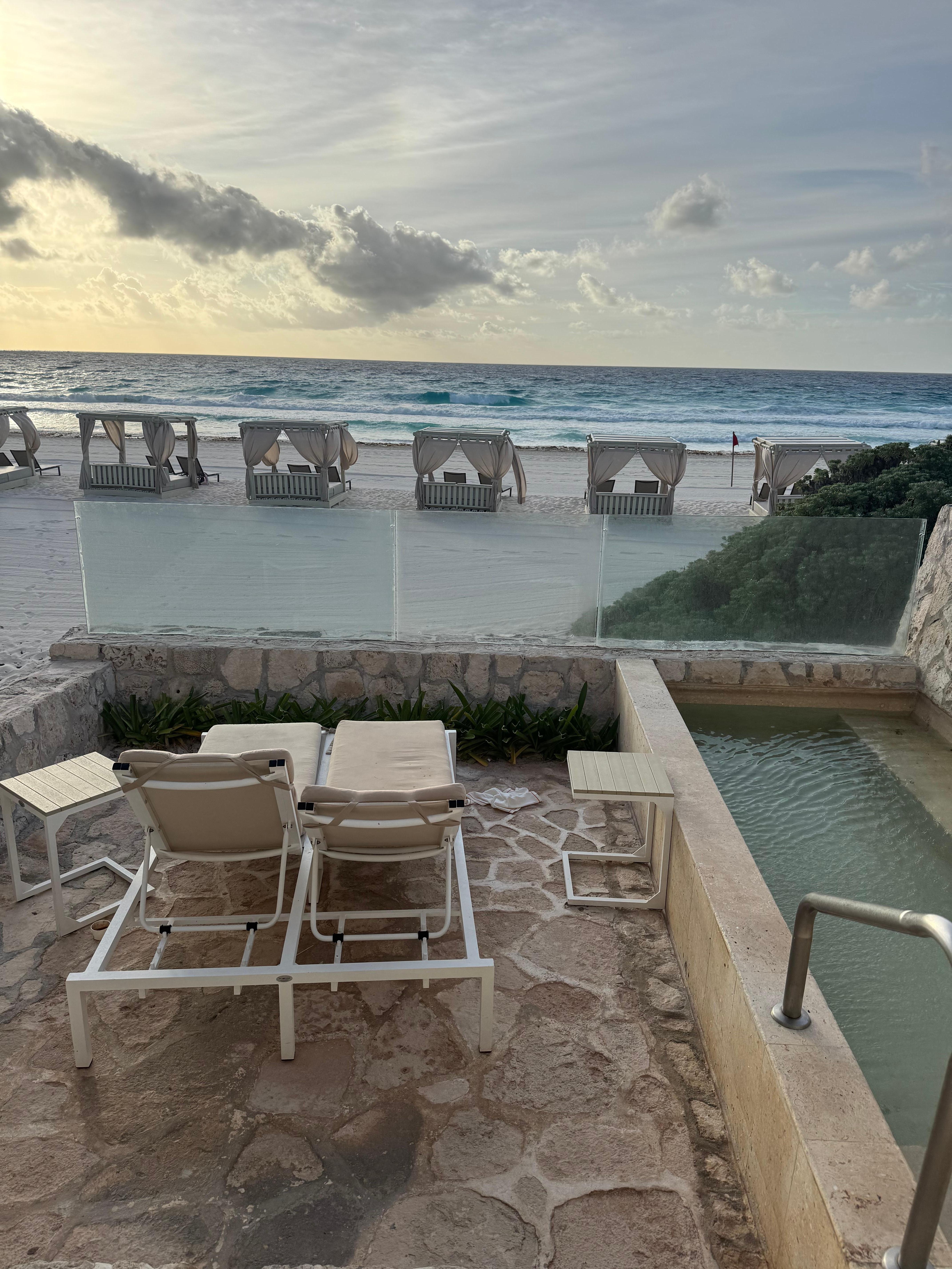 The ocean front villas were worth it! Ocean right outside your room, butler service and a great room. Jessica, our butler, was phenomenal, as was Alejandro from the Italian restaurant. The pool location was great and everything is well laid out and beautiful! The seafood was great here. I wish there was more authentic Mexican food choices overall however I’m thinking there was standard fare within the Royal group?