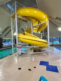 Mountain retreat with indoor waterslide for family fun and relaxation, plus a sauna and spa tub for unwinding after a day of outdoor adventures