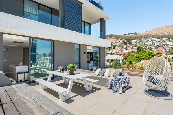 가구가 비치된 발코니 또는 파티오