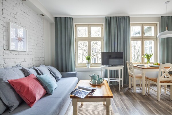 패밀리 아파트 (Villa 1B) | 거실 | 케이블 채널 시청이 가능한 37인치 평면 TV, TV