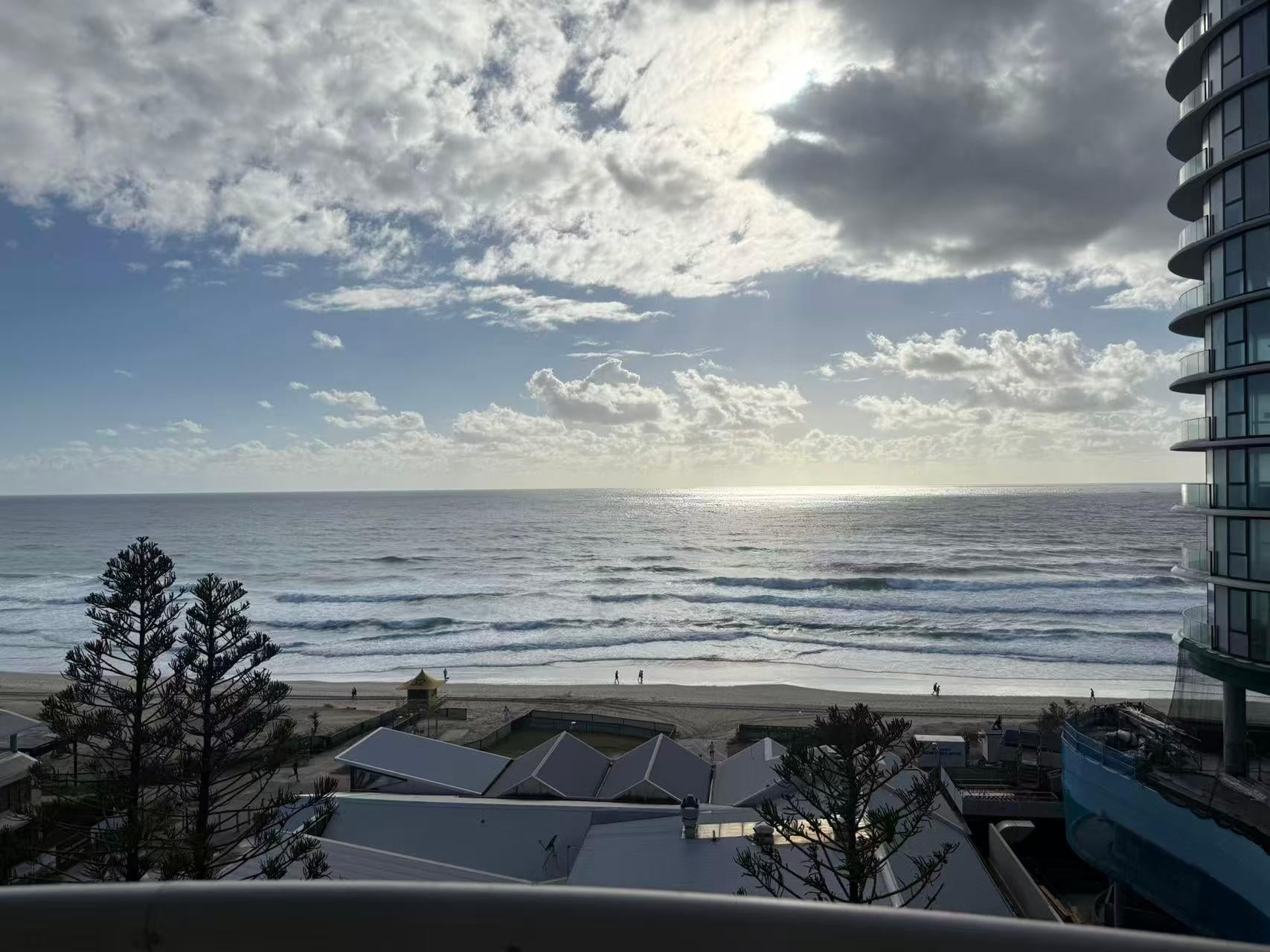 It was amazing! Beach was just a min walk. Farmer's market and cavil avenue was jus a 10min walk or 5min in tram. Tram jus outside property on the left. Love it! My 1 bedroom oven view apartment was huge. N yes view was fantastic in all rooms n balcony. Minus point was no Aircon but who cares when u have cool sea breeze at night!