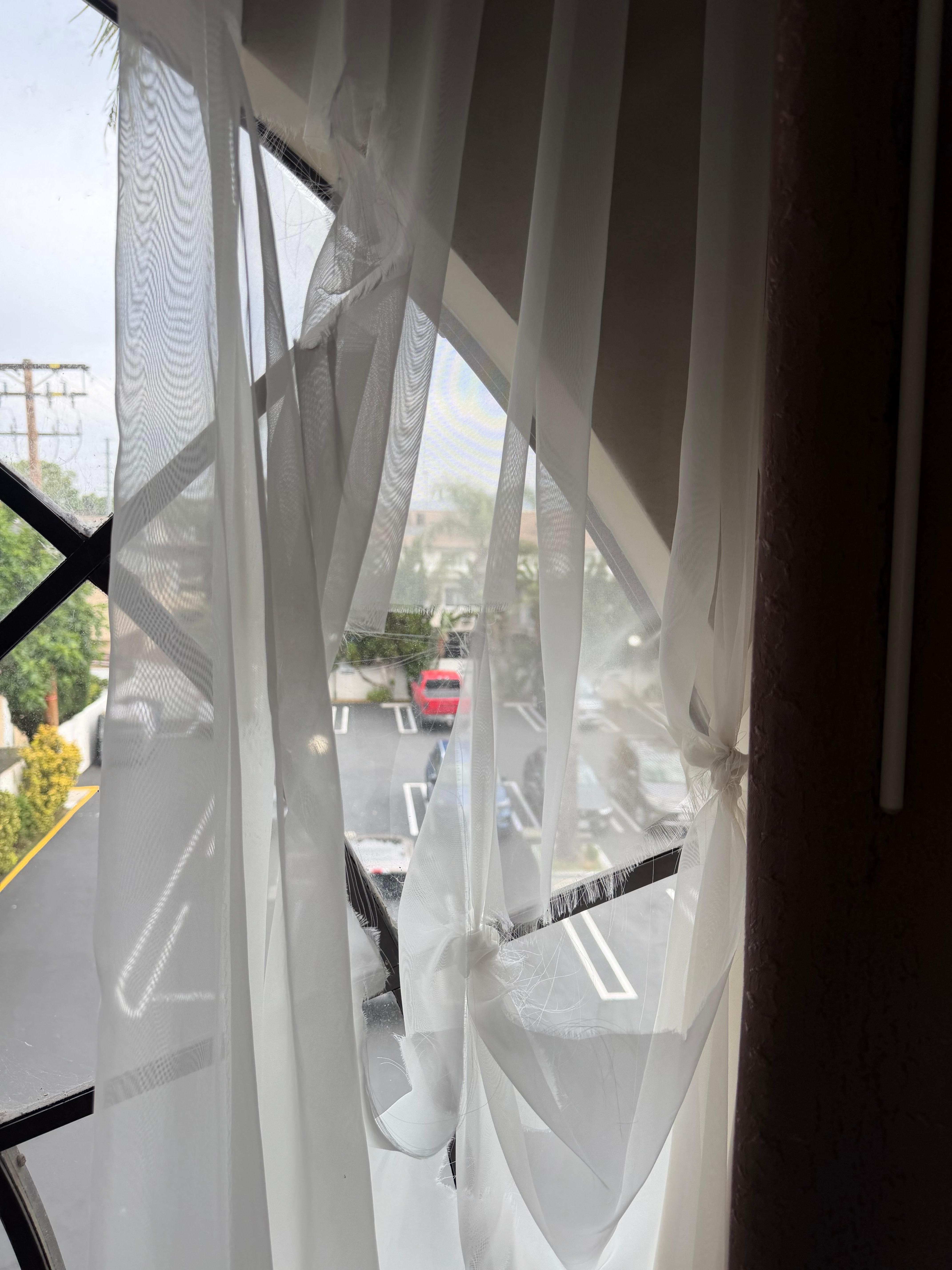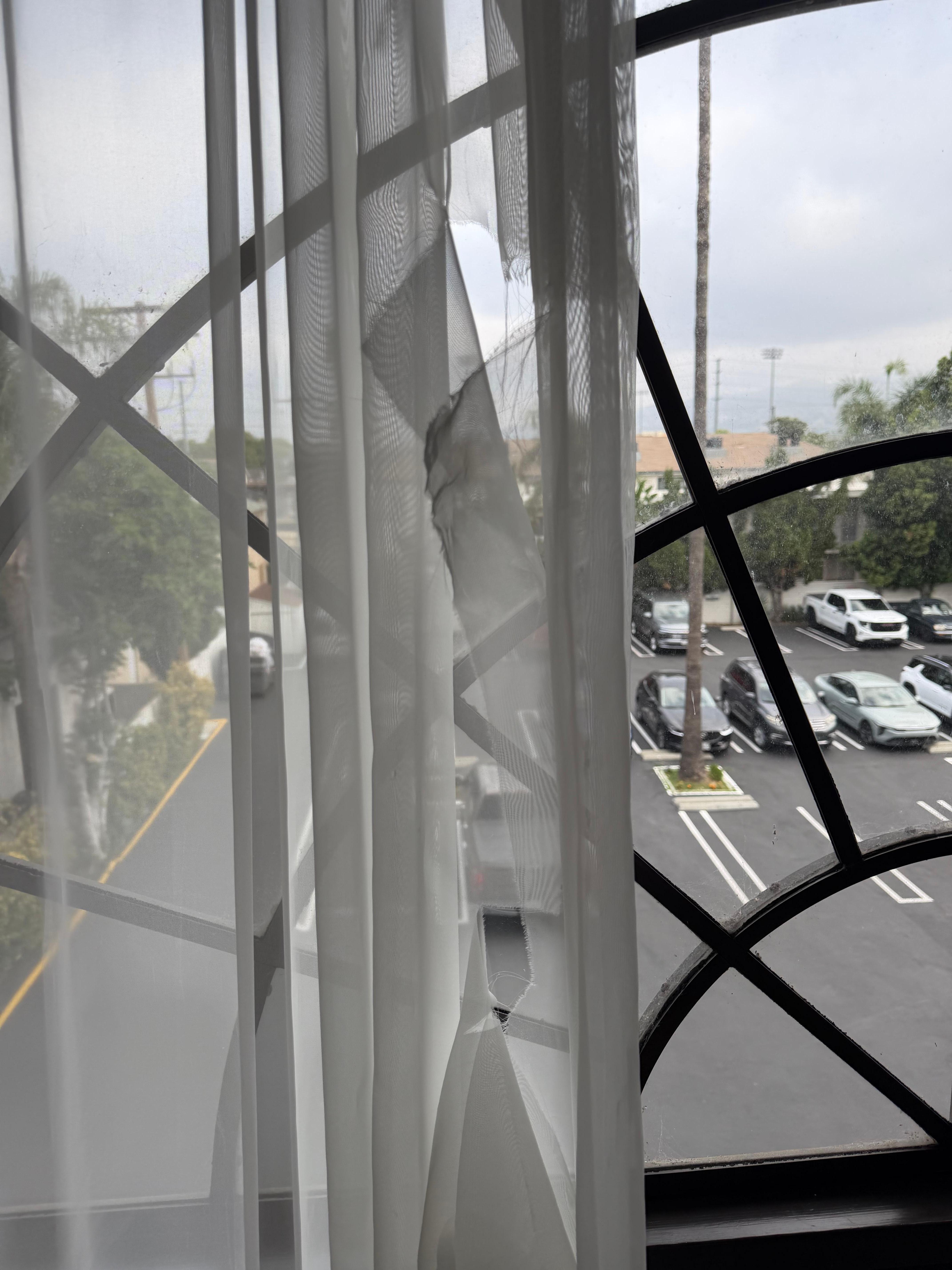 This hotel was dilapidated and sketchy. Our room was musty, window sheers were literally shredded and tied up all over the place, gross old cobwebs outside on our windows and my daughter and I both woke up with swollen puffy eyes ostensibly from mold or allergens in the room or ac vents. We also chose the hotel partially for laundry facilities as we were attending a local horse show and assumed we would need them and when we asked were told they actually weren’t on site…they were at a sister property across the street. We clearly were not going to go sit with our laundry across the street for an hour and a half. When I showed the pictures of the shears to our desk agent, she conjecture that maybe that had just been done by the previous guest. We left when returning from our commitments the second day and when we emailed management were told that they would refund us for only the one night because we had stayed two which of course we had not. Abysmal property. We spent the following two nights at a lovely hotel with the same rate that was a palace in comparison. Photos attached.