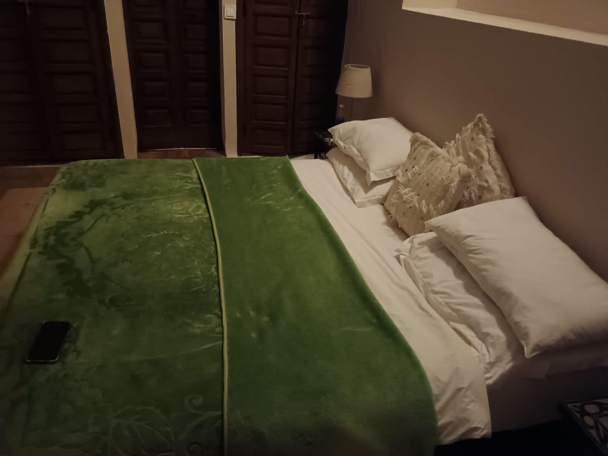 Notre chambre n’était pas dans le Ryad principal, notre Riad était plus petit, moins bien décoré, pas celui celui qui était présenté sur les photos lorsque j’ai réservé