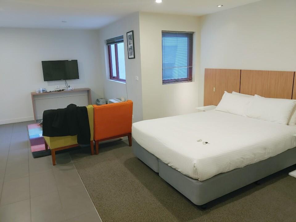 Plum was very clean and in a great location. However TV was tiny and didn't work (manager couldn't sort it x 2 - did offer to change my room but was unpacked by then); fridge worked intermittently and had to pull out from under the bench to get it started) and the bed was two singles linked together with a flimsy sheet over the top (didn't cushion the ridges at all).