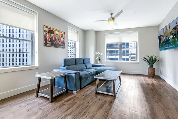 뉴올리언스에 위치한 이 아파트식 호텔에 서는 무료로 무선 인터넷을 이용하실 수 있습니다. 55인치 스마트 TV에서 넷플릭스 및 위성 채널을 이용하실 수 있습니다. 객실에는 다리미/다리미판 및 천장형 선풍기도 있습니다.