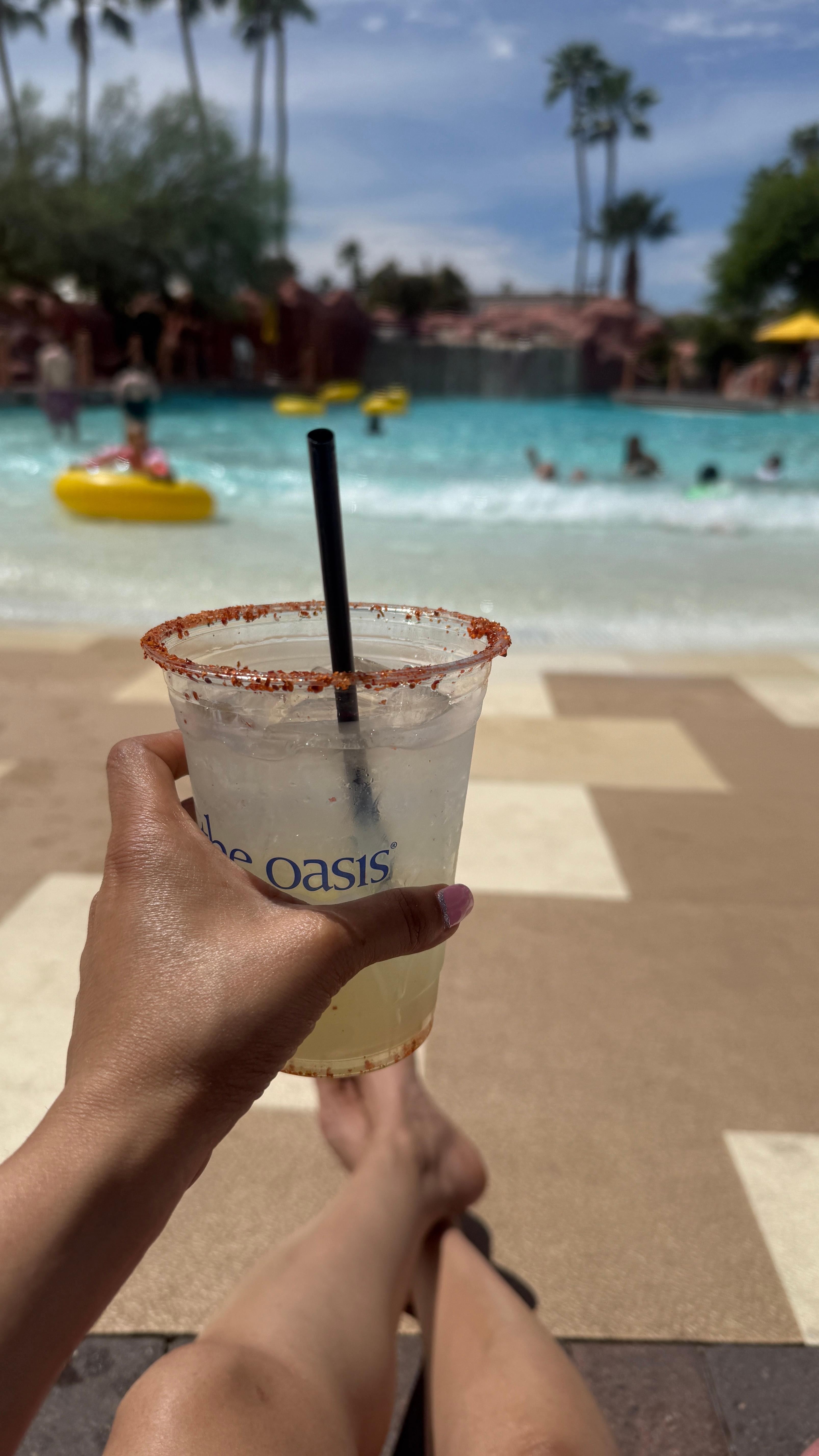 6 outdoor pools and a children's pool, along with a lazy river, a waterslide, and cabanas