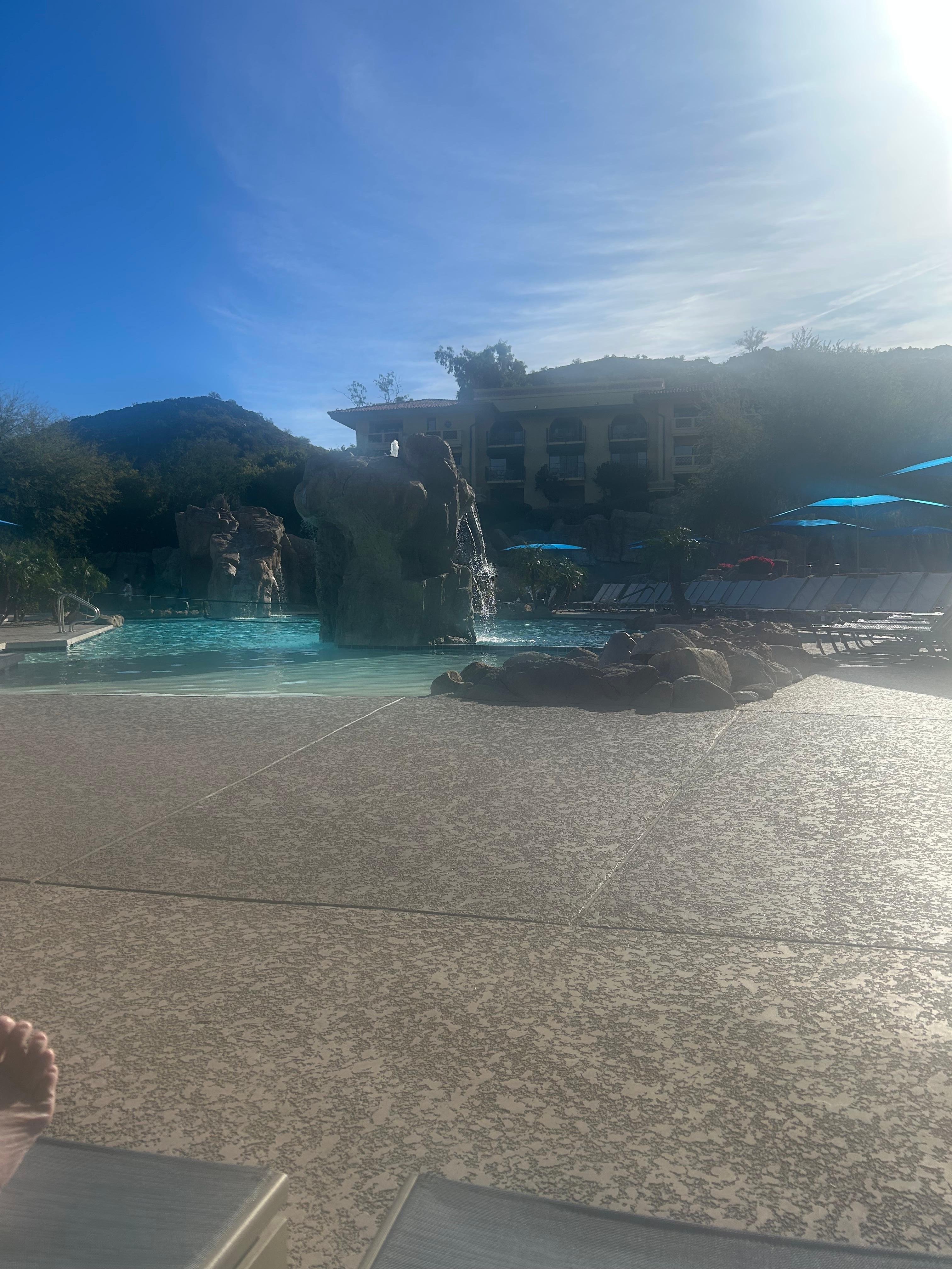Wonderful old property with all suite rooms. 7 pools and 7 spas. Dazzling rock formations, amazing hiking and golf. We were warmly greeted by check in. Our room was Hilton clean. The pools are all sparkling and refreshing. The water slide was a blast but a cold plunge in January! The scenery is just stunning. The property is like something out of a dream with some many steps and walkways and bridges. We sure did get our steps in just checking out the property! I fell in love with it and have already booked another stay for the entire family. Wonderful for a quiet couples get away with an adult only pool. And I mean 21 and over. The landscaping is lovingly tended to. The falls are beautiful. We can't wait to come back for more. Only downside is the expensive fiid and drinks. I suggest a happy hour like some of the other resorts have. $14 for a 20oz beer is a no way.