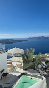 Cave-style elegance meets breathtaking views with a private hot tub and river pool overlooking the caldera. Enjoy breakfast delivered to your room and serene sunsets from your balcony, all within steps of Santorini's vibrant restaurants and shops.