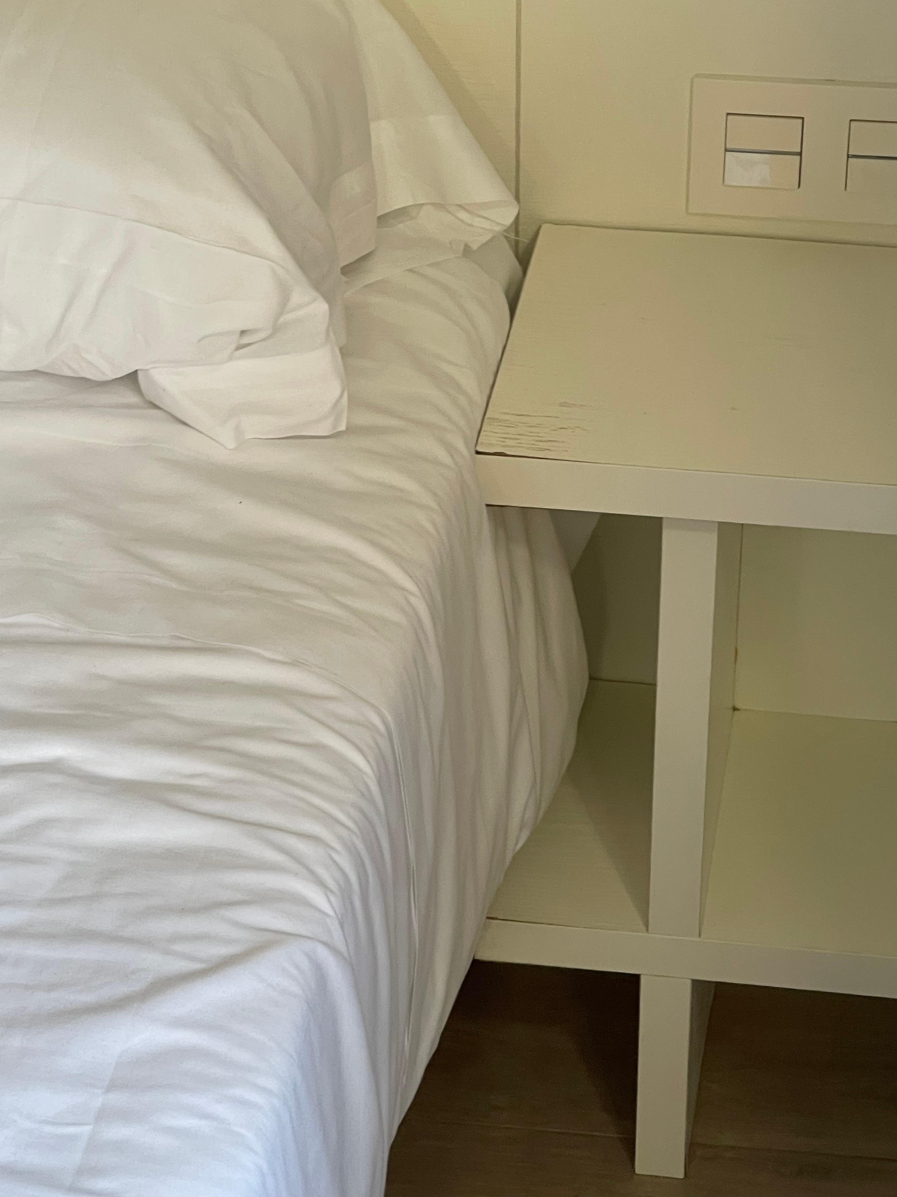 J’ai payé un supplément pour avoir une chambre avec lit double au lieu des lits twins proposés dans le tarif de base et me suis retrouvée avec 2 lits twins raccordés par un drap double, ce qui a rendu le lit inconfortable puisque cela faisait un creu au milieu. J’ai donc dormi sur le bord du lit soit sur un des 2 lits twins… Par ailleurs ma chambre était collée à l’ascenseur qui fait un bruit de grincement assourdissant à chaque utilisation ce qui m’a tenue éveillée tard le soir et m’a réveillée le matin.