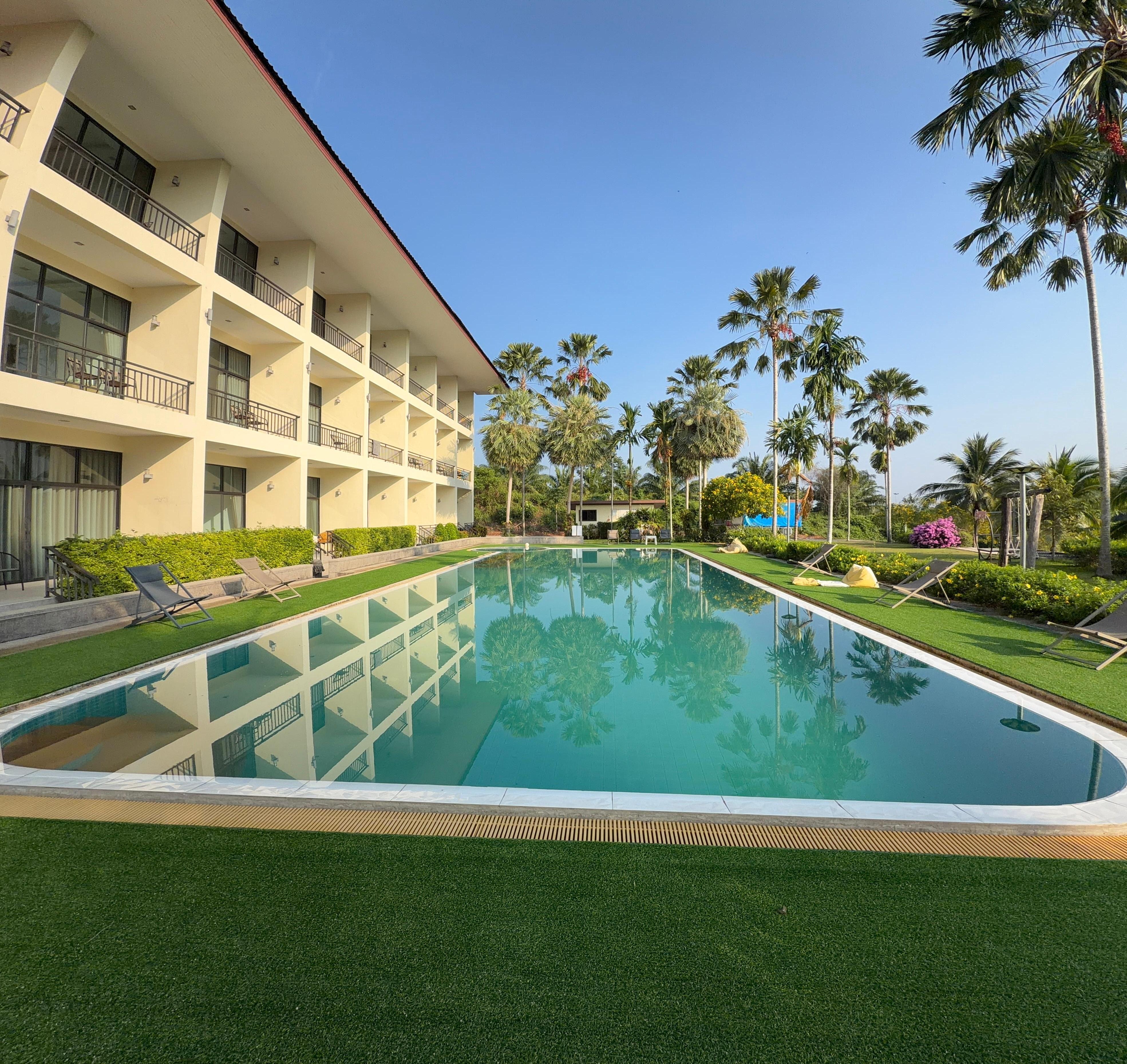 Det er svært at booke en chauffør via dette hotel og de ønsker, at man overfører penge inden afhentning. Vi kunne dog ikke få det til at fungere. Chaufføren kører virkelig aggressivt med sin telefon i hånden. Han taler ikke engelsk. Han var desværre også den eneste mulighed væk fra hotellet 😅 Grab fungerer ikke. Hotellet ligger langt fra alt og det er en ret trafikeret vej, som vi ikke havde lyst til at gå langs. Der er en restaurant og det meste på kortet var udsolgt. Det var ret primitivt. Området er virkelig smukt og poolen ser fin ud. Værelset var meget gammelt. Sengen er hård som sten, badeværelset mindre lækkert og bestemt ikke lydisoleret ud til gangen. Vi havde en baby med og kunne åbenbart ikke have hende med på nogle ture i området. Vi skulle være der 3 nætter men forlod det allerede efter en nat.