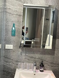 晚上睡到一半被廁所內的藍牙化粧鏡廣播給吵醒,只好把插頭給拔了。跟服務人員反應,服務人員說可能是被隔壁的連到,這是一個很差的服務睡到睡到一半被嚇醒。導致整晚睡眠不足。冷氣只能固定的方向吹,而且冷氣的聲音超級大聲像戰車一樣。桌子的空間非常小,導致很多東西都擺到地上來。熱水壺煮起來有一個怪味。