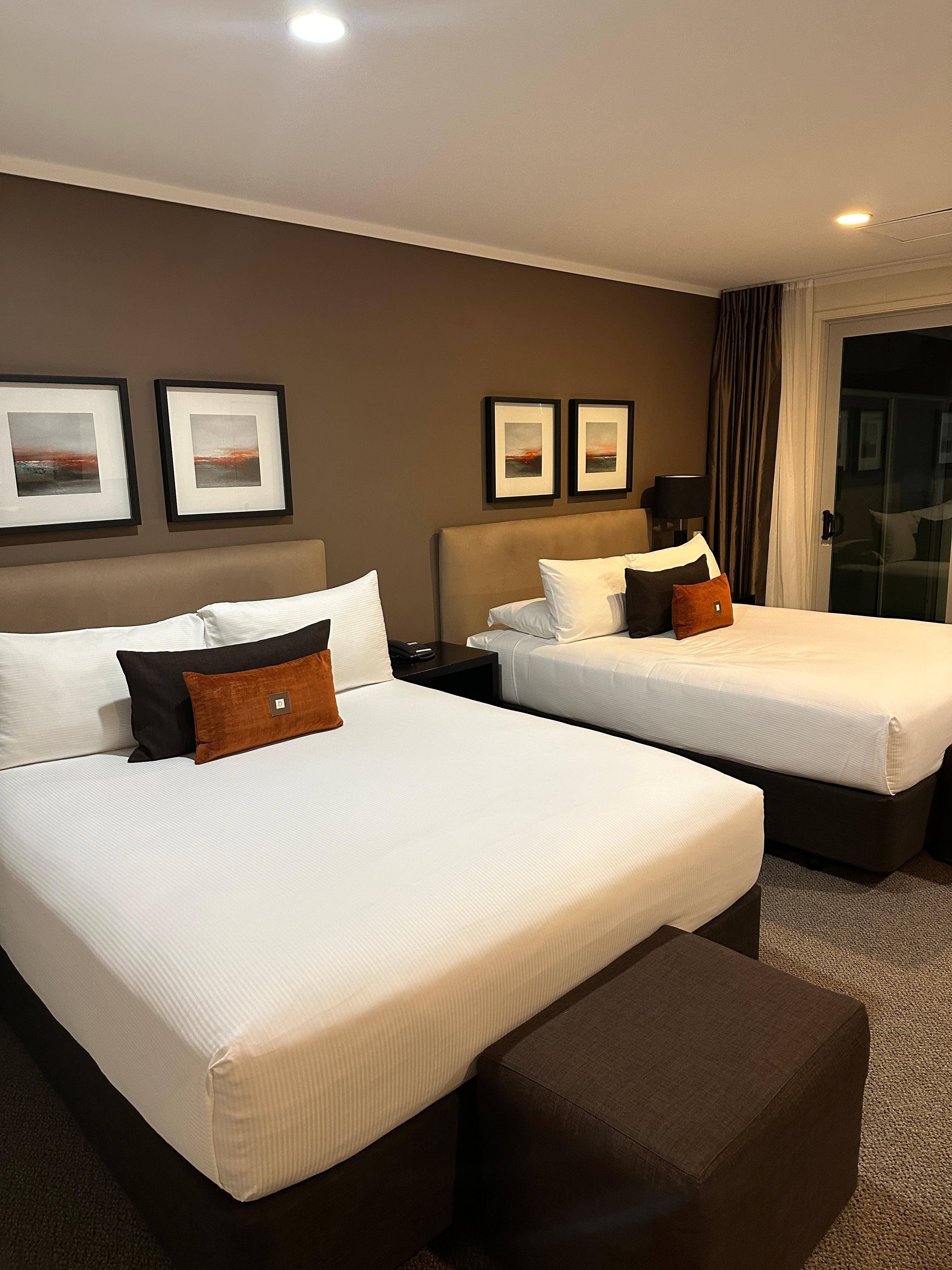 The location really suited us as we were competing at the close by athletic facilities. The room was spacious…the spa bath was extremely welcome when we arrived back wet and cold after a local thunderstorm. It was disappointing not to have the usual menu on offer…no entrees or mains…only a much reduced menu. No wonder there were hardly any other diners there in the evening. Breakfast was yummy!