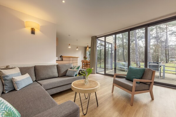 프리미엄 코티지, 침실 4개 | 거실 공간 | 케이블 채널 시청이 가능한 80cm TV