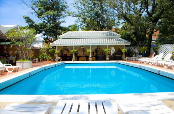 Travelers find a peaceful urban escape with a pool just steps from Bangkok's vibrant Khaosan Road - the perfect base for city adventures