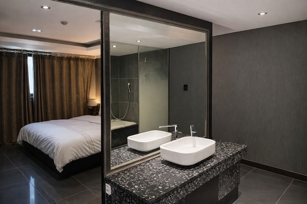 Bathrooms with deep soaking tubs and free toiletries