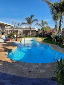 Hajo's Lodge in Milnerton offers a peaceful escape with two outdoor pools and a sunny terrace. Guests can enjoy the garden, library, or arcade/game room. Attentive staff assist with laundry services, and meeting rooms are available throughout the stay.