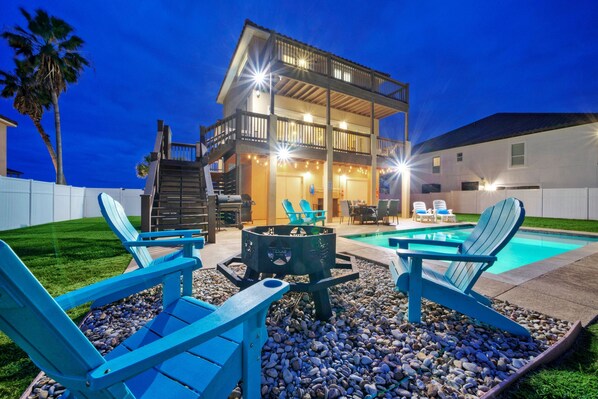 2 Homes, Sleeps 22 Steps to the Beach, Private Pool, Fire Pit, Balcony Views