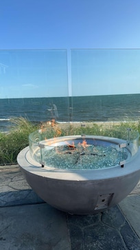 Pelham House Resort, steps from the ocean, offers a peaceful escape with beautiful beaches and evening firepit gatherings. Guests can relax in the outdoor entertainment area, access the private beach, and use in-room WiFi while lounging in the sun or under an umbrella.