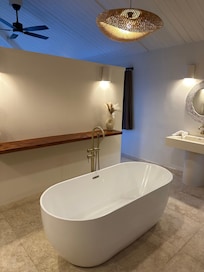 Bathrooms include separate bathtubs and showers with deep soaking bathtubs and rainfall showerheads, bathrobes, and hair dryers. This English Harbour cottage provides complimentary wireless Internet access. Additionally, rooms include ceiling fans and blackout drapes/curtains. Housekeeping is provided daily.