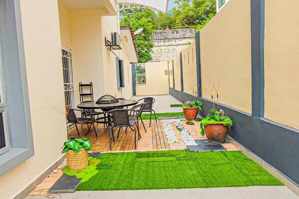 Charcoal grills, outdoor furniture, and smoke-free premises