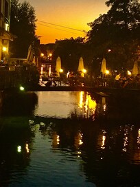 Hotel con restaurante terraza al lado del canal