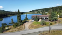 Lac Le Jeune Resort offers a peaceful retreat near McConnell Lake Provincial Park. Visitors can enjoy various water activities on the lake or simply unwind with a drink at the bar after a day of fishing or exploring the tranquil surroundings.