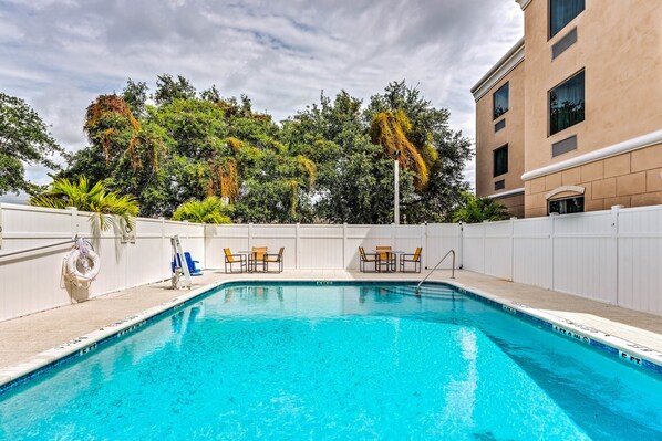 Holiday Inn Express & Suites Lantana offers a refreshing city-center retreat. Guests enjoy a breakfast buffet and high-speed WiFi. The property features an outdoor pool, 24/7 business center, and a snack bar/deli, with staff ready to assist throughout the stay.