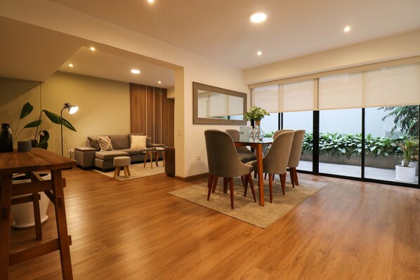 미라플로레스의 테라스가 있는 모노크로매틱 2베드룸