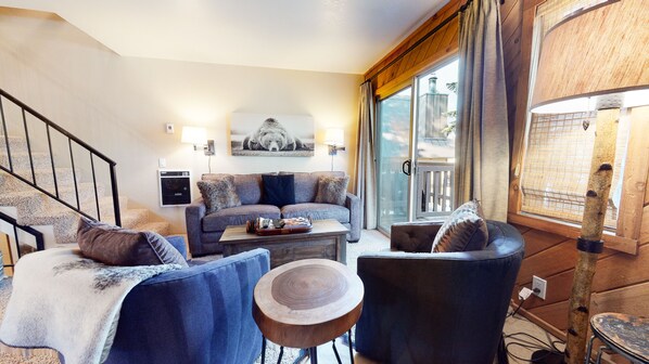콘도, 침대(여러 개), 파티오, 산 전망 (Mammoth View Villas ) | 거실 | 벽난로