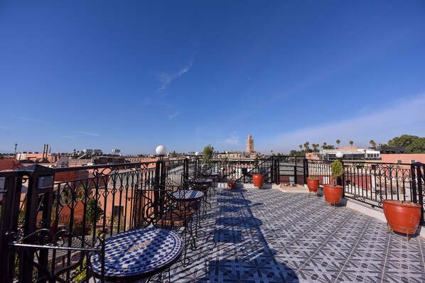 Riad Assia provides a quiet sanctuary in central Marrakech where guests relax on the rooftop terrace between sightseeing trips. The property serves a complimentary breakfast buffet each morning, offers WiFi in all rooms, and puts visitors within walking distance of Bahia Palace.