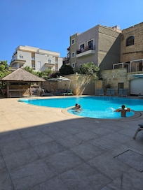 The seaside Maritim Antonine Hotel & Spa Malta offers a peaceful escape with two poolside bars and a scenic rooftop terrace. Guests start their day at one of three restaurants, then enjoy facials or hydrotherapy at the spa, with free WiFi. The pool and staff earn high praise.