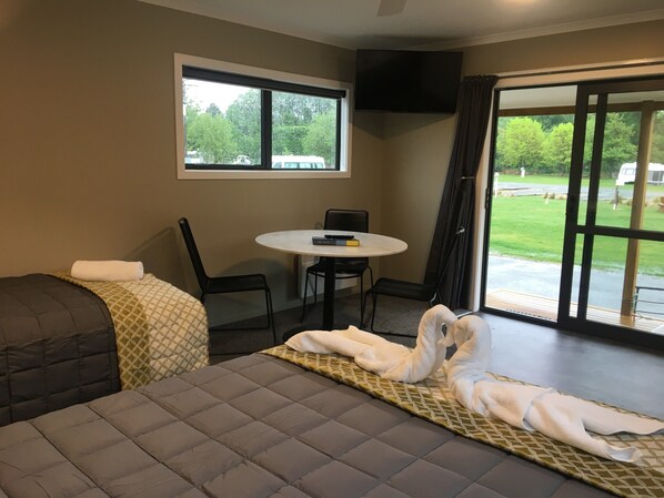 This holiday park sits within New Zealand's impressive landscape, providing a comfortable base for travelers. Guests can use Wi-Fi directly from their rooms and gather around the barbecue grills, which come with outdoor furniture for relaxed meals in the fresh air.