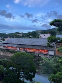 Nestled by the river, Wataya Besso offers a serene retreat. Unwind with an indoor mineral hot spring (onsen), indulge in Japanese cuisine at one of two on-site restaurants, or explore shopping and a coffee shop/cafe. Relax in the Japanese garden or enjoy table tennis and bike rentals.