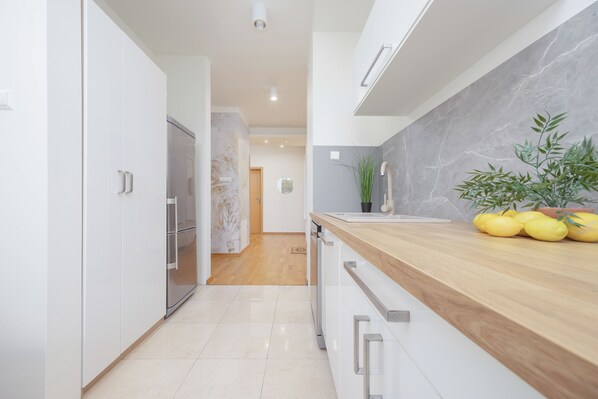 Apartment, 3 Bedrooms, 2 Bathrooms | Private kitchen | Microwave, oven, dishwasher, electric kettle - Cozy Apartment for 5 by Renters (Warsaw)