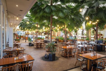 Urban retreat in the business district where guests can enjoy a round of mini golf or lounge by the outdoor pool surrounded by gardens