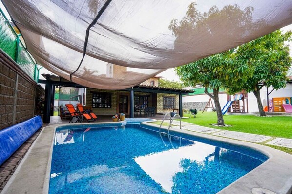 Outdoor pool, sun loungers - Family house in Oaxtepec Pool & Hot tub (Yautepec)